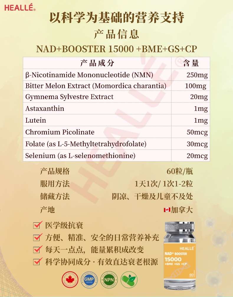 • 商品名称:NAD+ BOOSTER 15000 +BME +GS +CP 60粒/甁