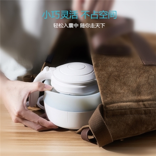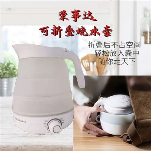 折叠式壶体设计,小巧灵活,不占空间,携带方便 旅行双电压设计,110V/240V,全球大多数国家地区通用 婴儿级食品硅胶材质,耐高温,安全无味,饮用更放心 食品级304不锈钢发热盘,导热快,耐腐蚀,煲煮更健康 0.8L小容量,满足1-2人的量,轻松解决旅途饮水需求