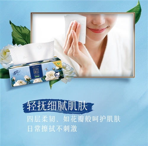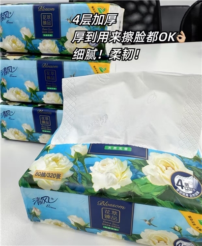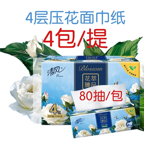 80抽/包,一提4包; 源自原生木浆,4层优质面巾纸,柔韧不易破,亲和不伤皮肤。