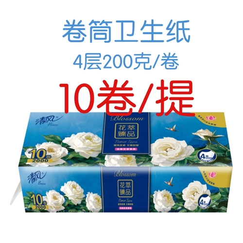 一提10卷; 源自原生木浆,4层优质卫生纸,柔韧不易破,亲和不伤皮肤。