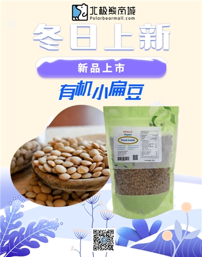 有机绿扁豆:含有大量纤维和优质蛋白质,富含维生素B族、铁、钙、锰、钠、锌和磷矿物质。