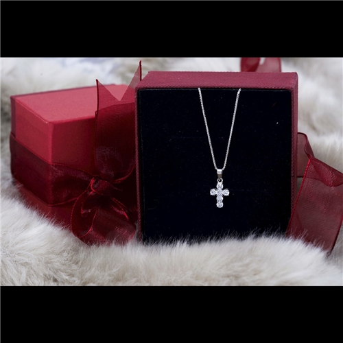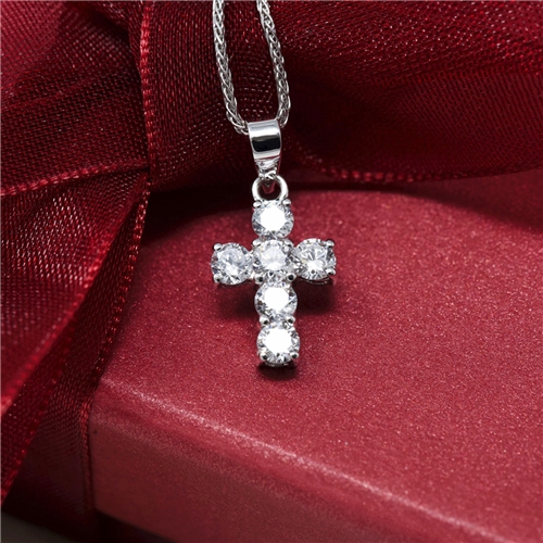 十字架吊坠18K白金镶嵌锆石 PD4738