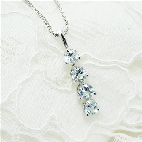 四颗圆形海蓝宝石吊坠18K白金 PD4493