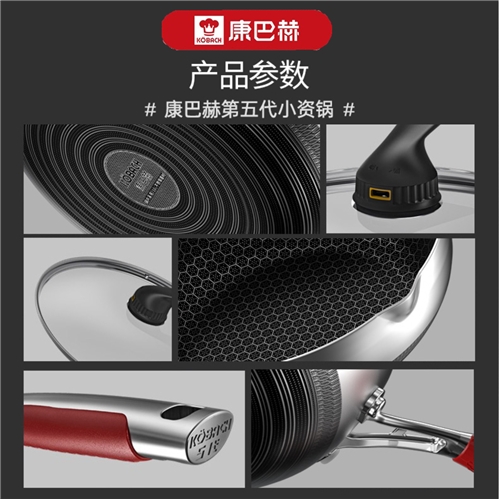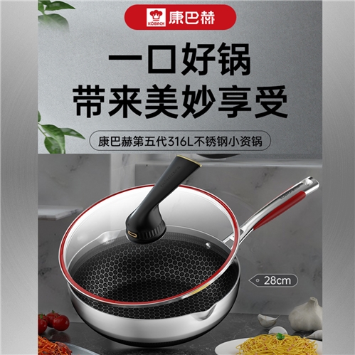 康巴赫 第五代蜂巢316L复合不锈钢32cm炒锅连盖